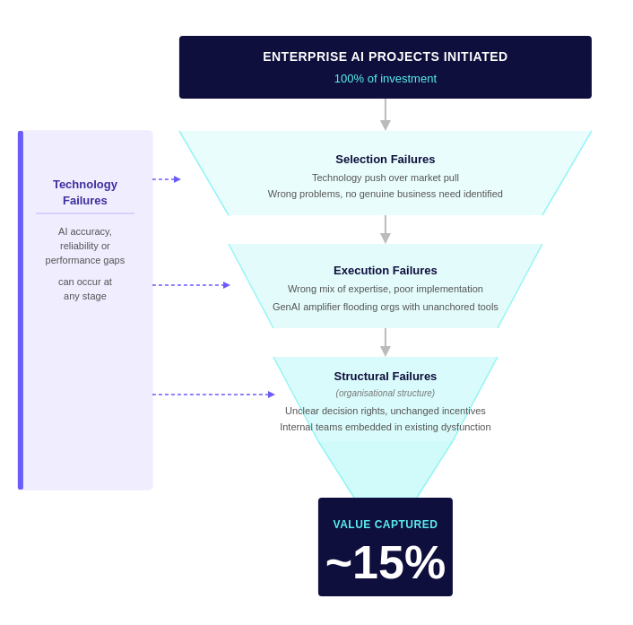 Organisation Failures: the majority of value loss happens through organisational failure modes that have nothing to do with whether the technology works.